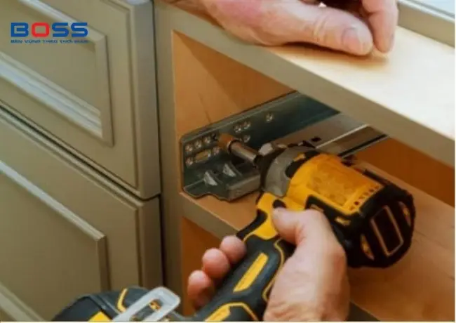 ✔ Trong trường hợp tủ đã cố định, thợ cần lắp thêm miếng căn chỉnh hoặc chêm nẹp gỗ để đúng kích thước phụ kiện.
