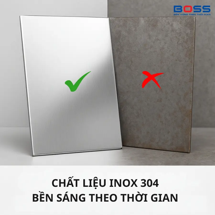 ✔ Ưu tiên inox 304 chuẩn, kiểm tra bằng nam châm hoặc giấy thử.