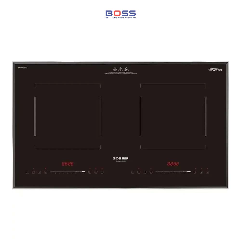 Một trong những ưu điểm nổi bật của bếp từ BKI689N của Boss chính là mặt kính EUROKERA đến từ Pháp, được biết đến với độ bền cao, khả năng chịu nhiệt và chịu lực tốt. Mặt kính này không chỉ giúp bếp trở nên sang trọng mà còn dễ dàng vệ sinh, chống trầy xước và bền bỉ theo thời gian. Thiết kế vát 4 cạnh kết hợp với viền bo hợp kim nhôm cao cấp, mang đến vẻ ngoài tinh tế và hiện đại cho gian bếp của bạn.